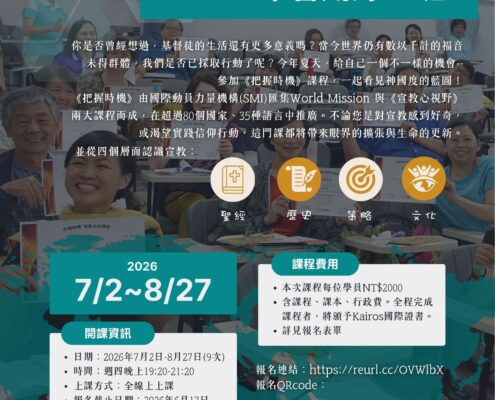 這裡不定期更新各類宣教活動資訊, 包含各差會、機構、神學院、宣教學院等單位的活動資訊。 如欲了解活動詳情及最新資訊,可直接聯繫各活動主辦單位, 或上各單位官方網站查詢。