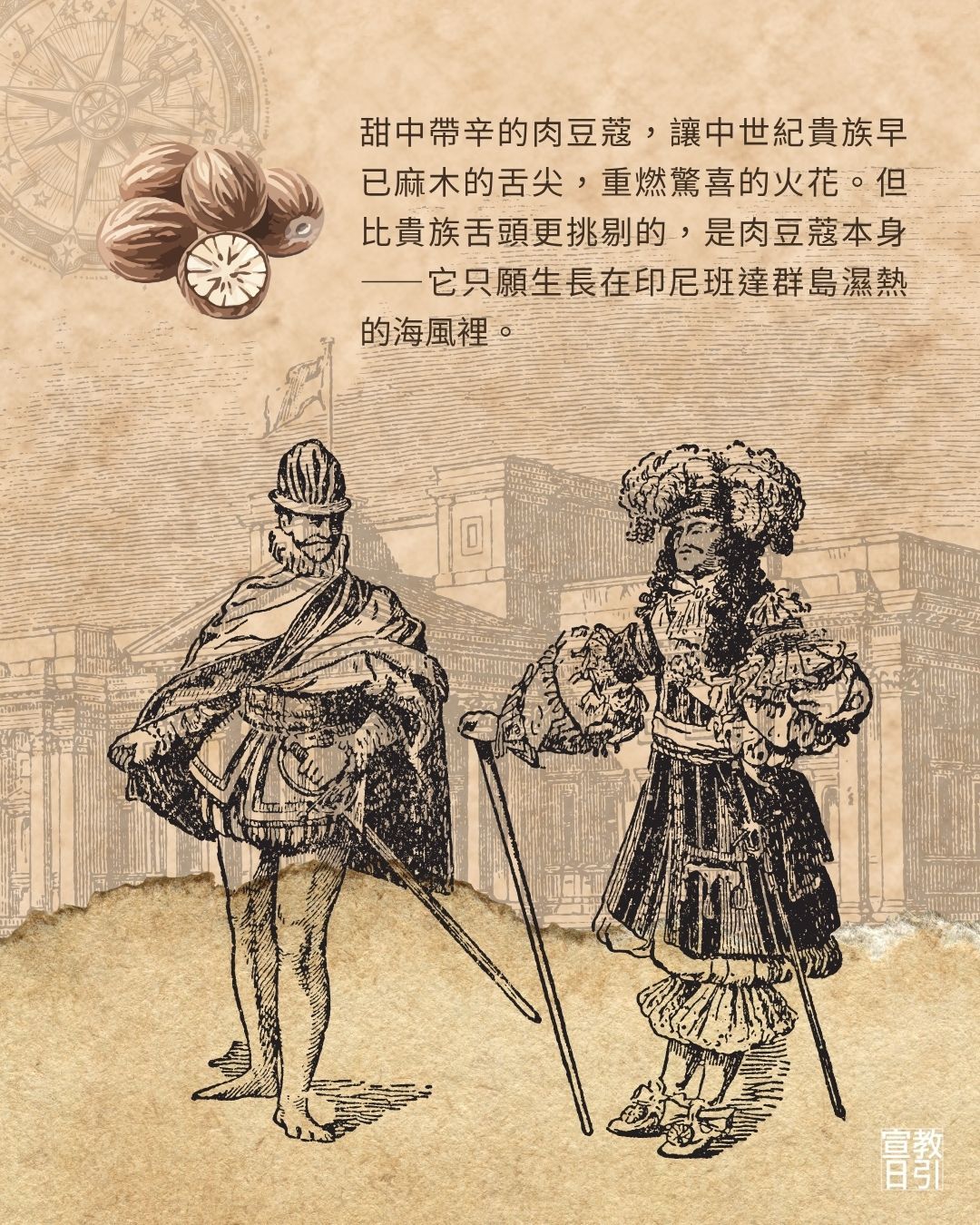 甜中帶辛的肉豆蔻曾經風靡中世紀貴族階層,更在印尼班達群島開始一波血腥的香料戰爭歷史。